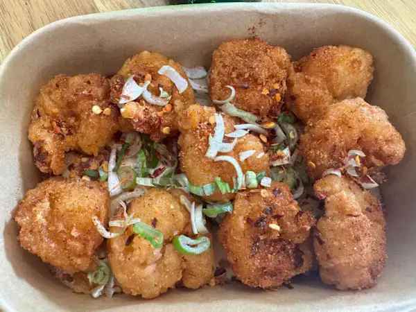 Served with battered sliced chicken topped with a Thai sweet chili sauce.