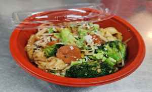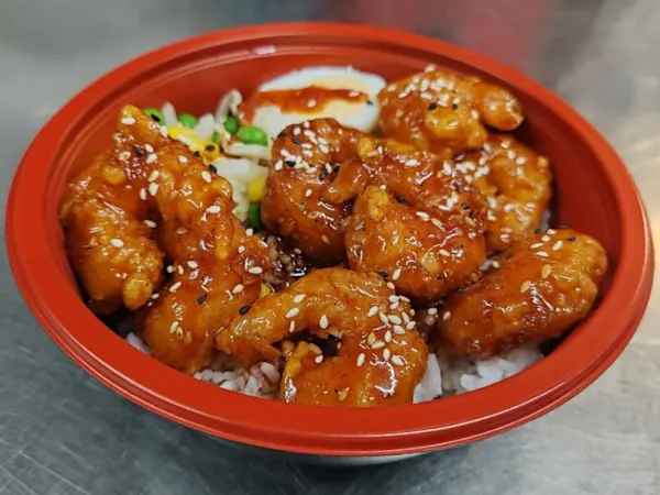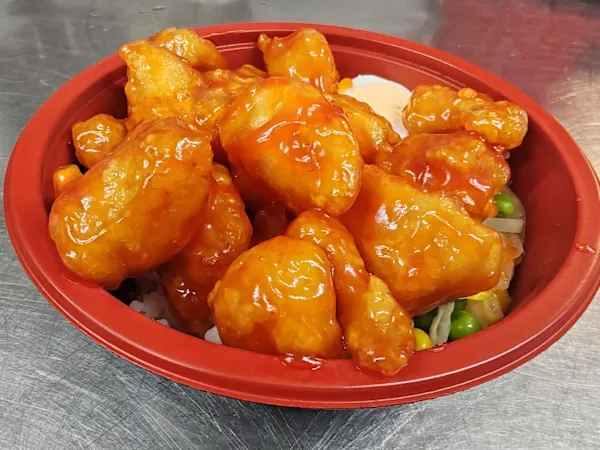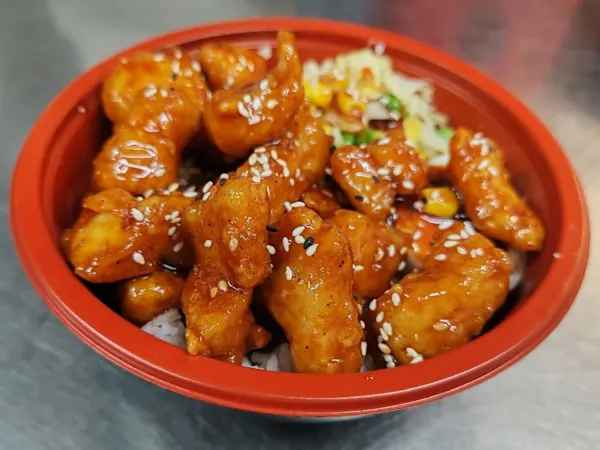 Served with battered and deep-fried chicken topped with a sweet and tangy lemon sauce.