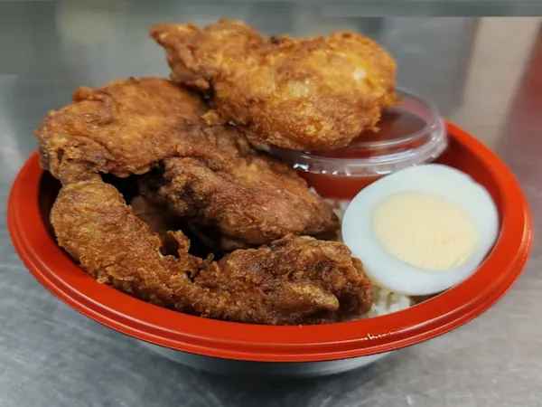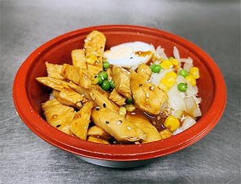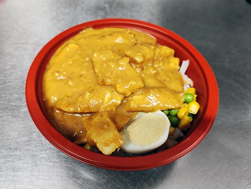 Tender pieces of chicken breast stir-fried in our homemade sweet chili sauce, served with steamed rice and a boiled egg.