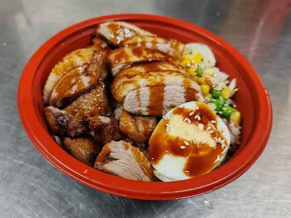 Served with sliced Roast Duck topped with our home-made soy based sauce. Sprinkled with sesame seeds, served with boiled Egg and steamed Rice