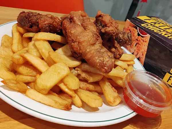 Includes 4 pieces fried Chicken and Chips.