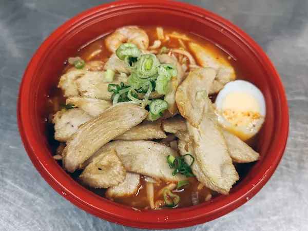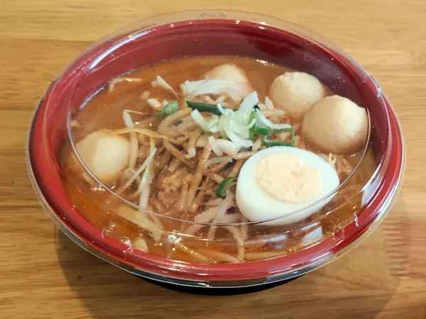 Spicy noodle cooked in a rich and spicy Coconut milk-based soup, served with Chicken, Fish Balls and boiled Egg.