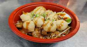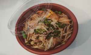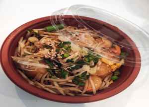 Thick springy Japanese Noodle topped with a savoury sauce, served with Beansprouts, Onion, Carrots, Cabbage, Sweetcorn and garnished with Spring Onions.